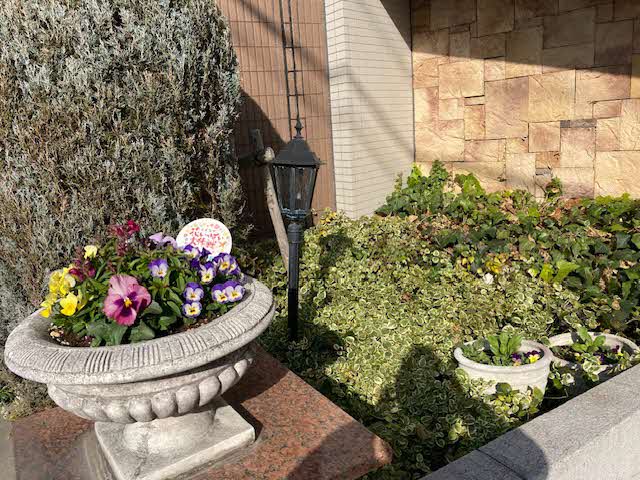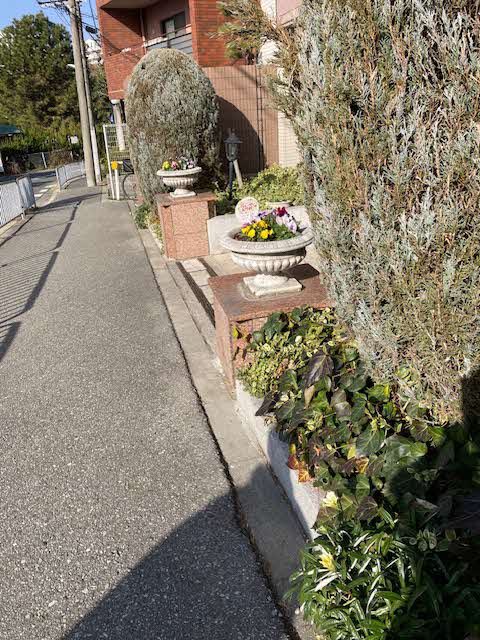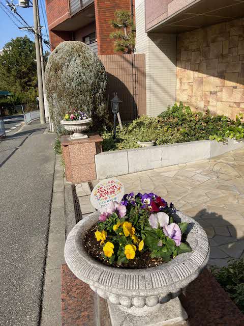 週1回、中庭委員会のメンバーがマンション周辺、中庭花壇の手入れをしています。