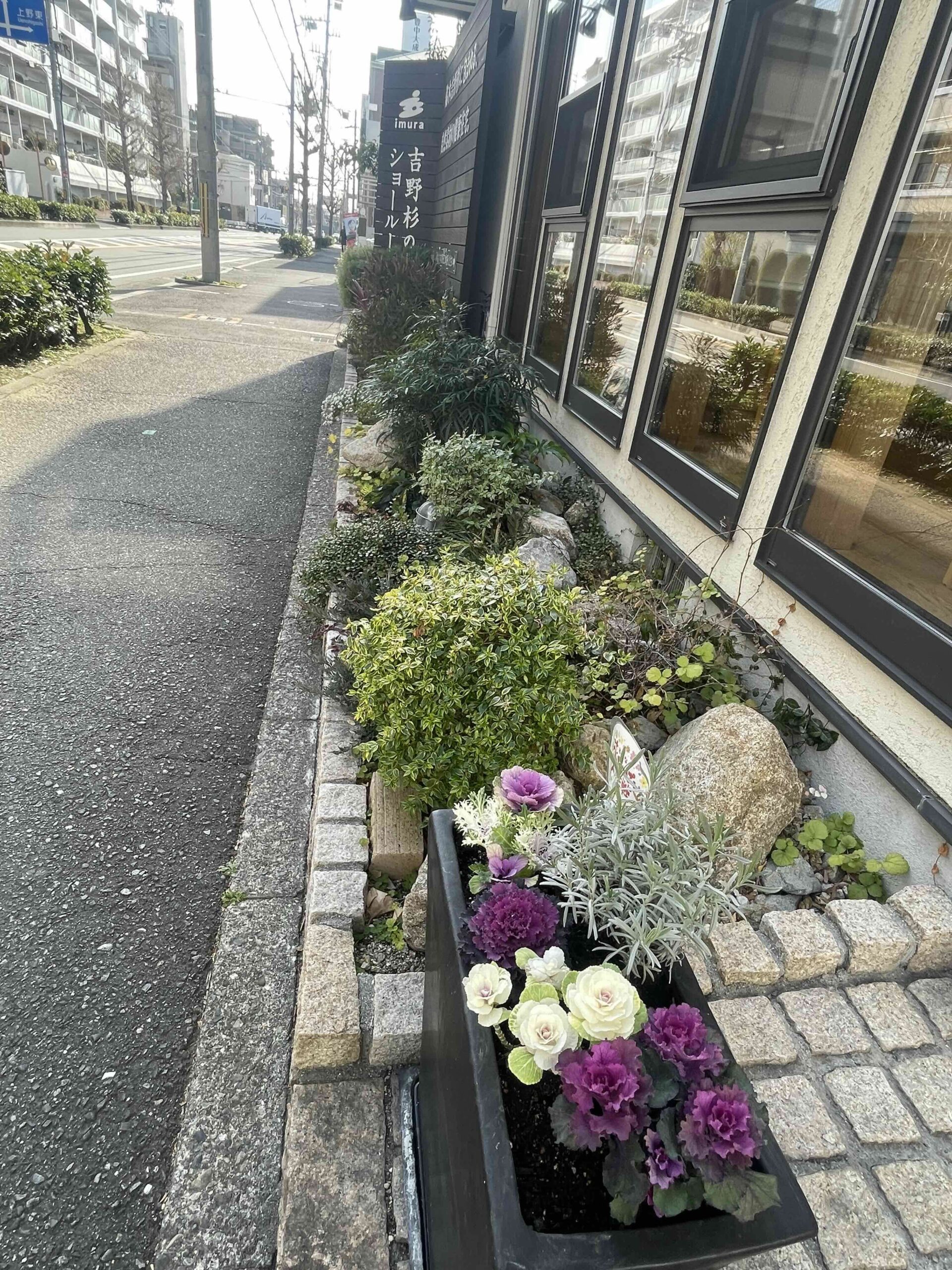 神崎刀根山線の道沿いの、東豊中町にある『木の家』株式会社イムラです。近所の方々がよく散歩道として利用される通り沿いの花壇で、緑とお花を育てています。季節ごとに変わるかわいいお花たちを楽しんでいただけたら嬉しいです。